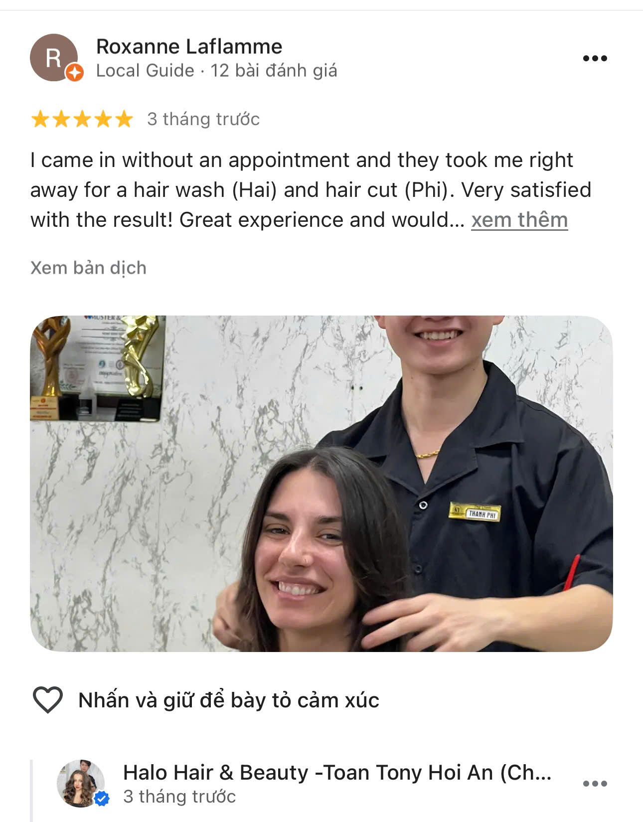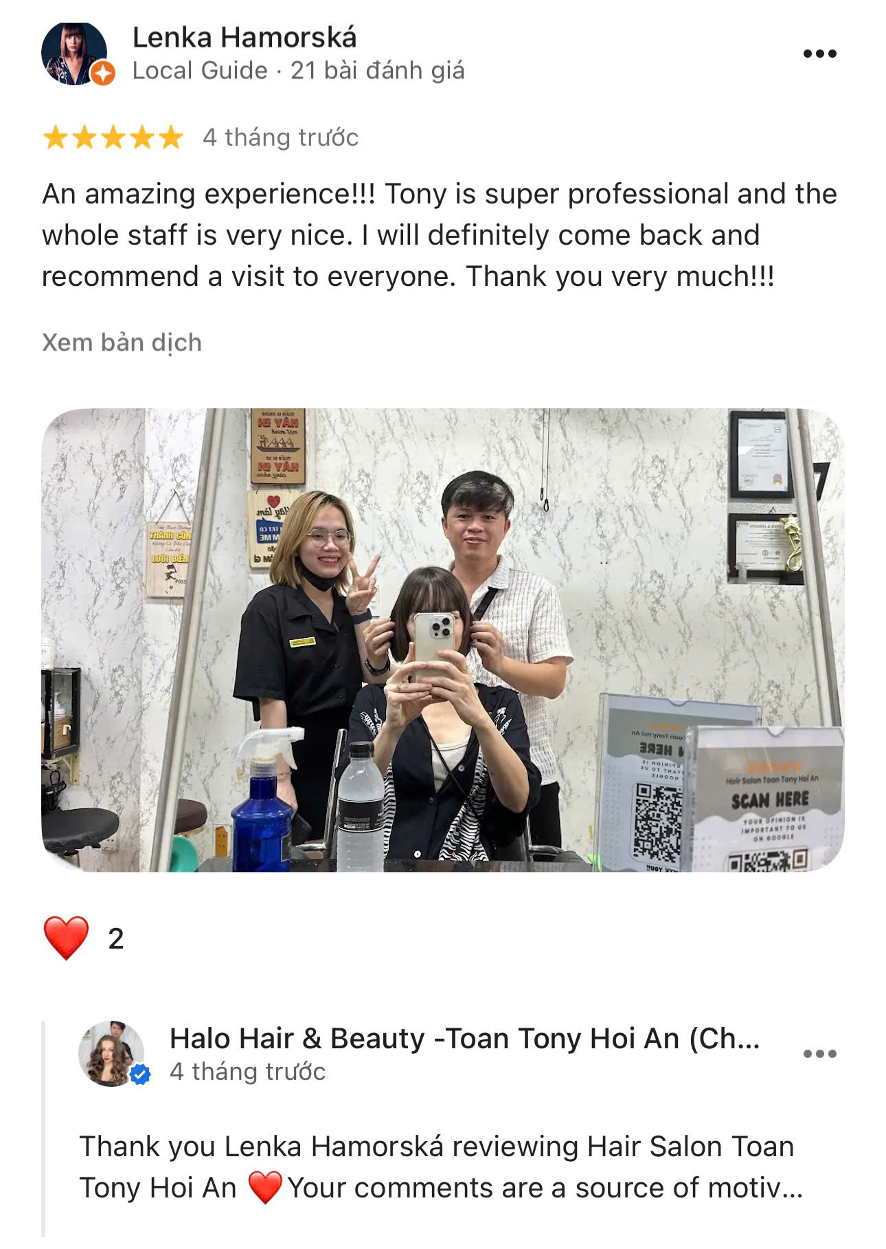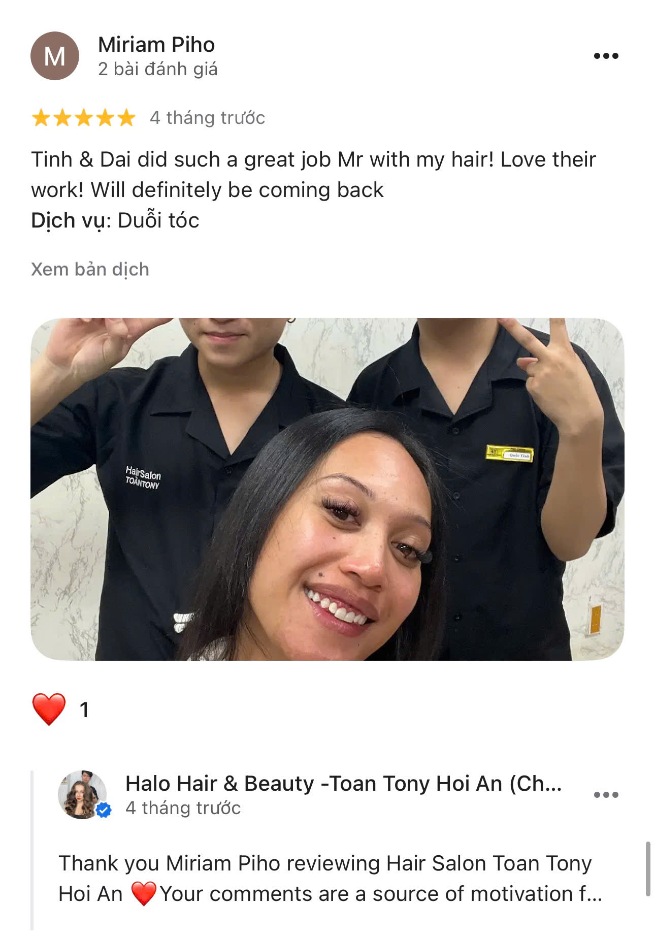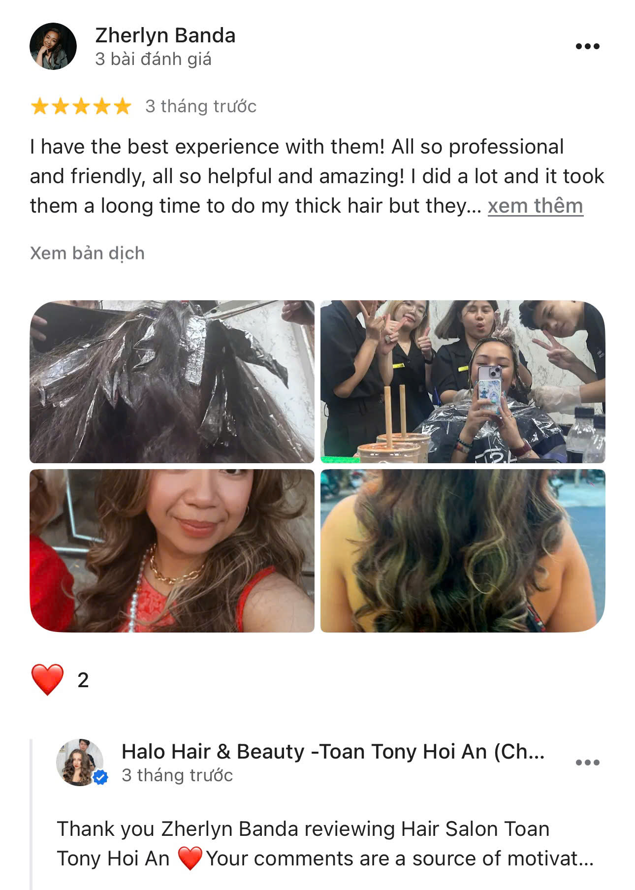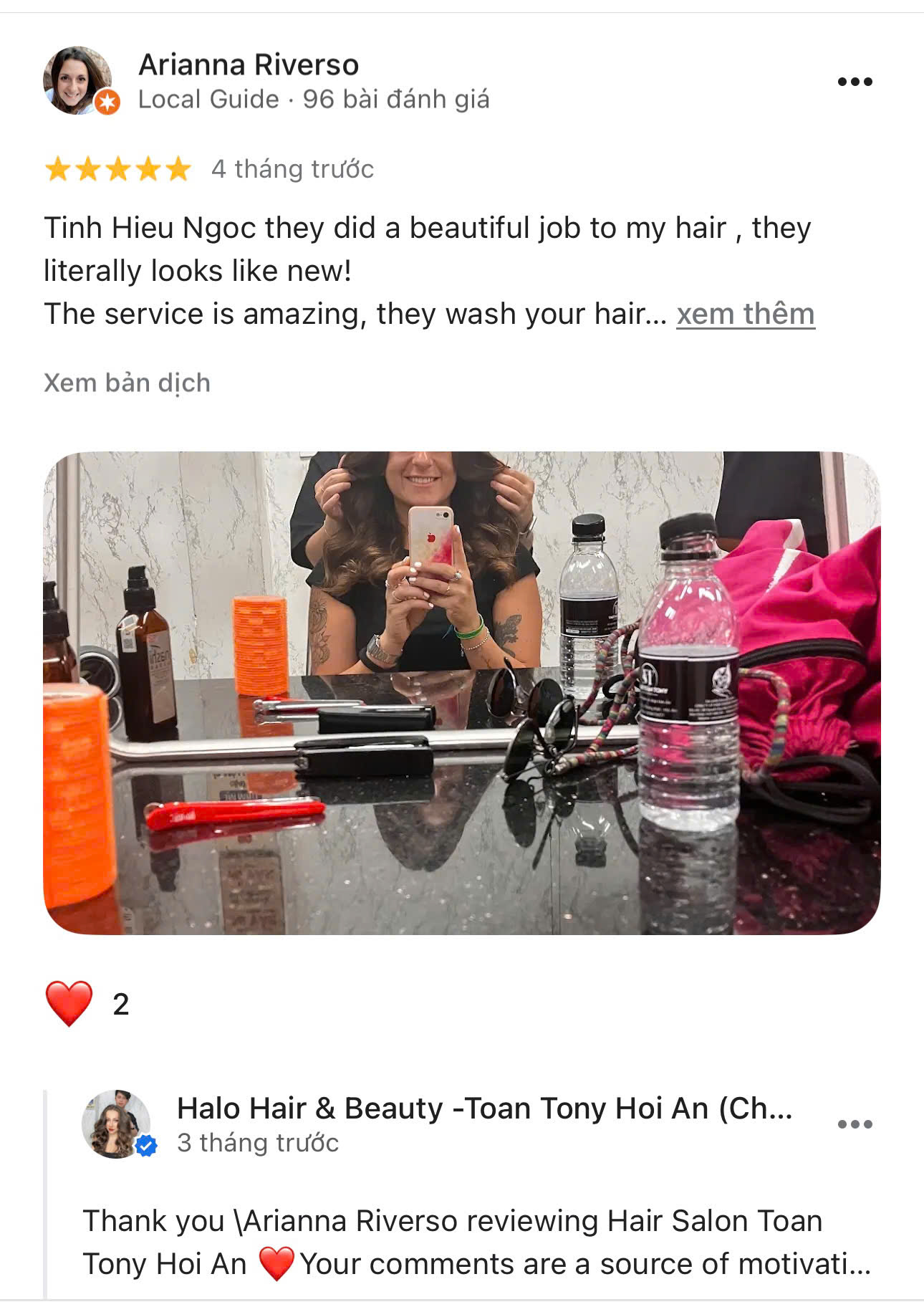Một ngày tuyệt vời vì mình đã có được mái tóc đẹp như ý, cảm ơn đội ngũ Halo Hair & Beauty Hoi An rất nhiều